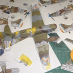 Niemożność malowania kamuflażu z ręki pokrzyżowała mi trochę plany i spowolniła znacznie robienie modelu, bo musiałem zrobić sobie komplet papierowych masek, które po wycięciu mocowałem na skrawkach tektury oklejonej z dwóch stron taśmą dwustronną, a na tym taśmą Tamiyi, żeby zmniejszyć przyczepność. Choć cały proces był bardzo męczący, to w efekcie uzyskałem taką ostrość granic plan kamuflażu, jaką chciałem.
