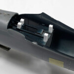 Na pomalowany fotel nakleiłem pasy pilota wycięte z taśmy Tamiya pomalowanej na parciany kolor Tamiyą XF-55 Deck Tan ze skórzanymi podkładkami też wyciętymi w taśmy Tamiyi, ale pomalowanymi farbą Mr. Paint MRP-262 Dark Wood. Klamry w pasach wziąłem z zestawu PART odcinając je od fototrawionych pasów.