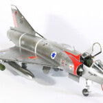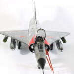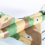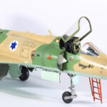 Teraz o modelu. Shahak 159 zrobiłem dwadzieścia lat temu na fali „antyarabskiej” zaraz po atakach na World Trade Center. Po prostu chciałem zrobić model maszyny, która najwięcej osiągnęła zwycięstw nad Arabami. Wybór był stosunkowo łatwy, musiał to być myśliwiec izraelski i to okresu wojen 1967-1973, kiedy to najwięcej było potyczek powietrznych pomiędzy Izraelem i jego sąsiadami Egiptem, Jordanią i Syrią. Nie znałem wówczas jeszcze szczegółowej historii tej maszyny. Ale trafem akurat taką wówczas ulepiłem i dlatego pozwolę sobie ją tutaj też zamieścić. Jest to stary model Heller, jedyny wówczas dostępny. Zrobiony jest w wersji muzealnej tak jak go dzisiaj można zobaczyć w Izraelu. Niestety został nadszarpnięty „zębem czasu” i brakuje mu paru elementów jak drzwi komory podwozia i parę detali.