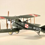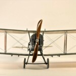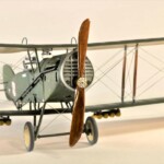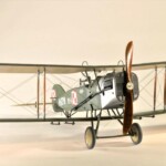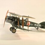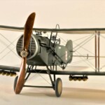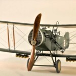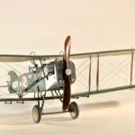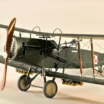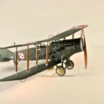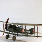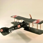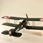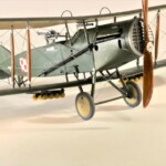 Sam model to Roden. Wersja z Falcon III nie wymagała żadnych modyfikacji natomiast nie dostępny jest model z silnikiem Hispano Suiza. Po głębszych oględzinach i porównywaniu do planów doszedłem jednak do wniosku że wersje z silnikiem Arab i HS były na zewnątrz bardzo podobne. Jedyną różnicę jaką udało mi się znaleźć to że kolektor spalin wychodzący z bloku silnika w przypadku Arab składał się z czterech równomiernie oddalonych wylotów a w HS dwa środkowe były zbliżone do siebie. Tak też zmodyfikowałem swoje kolektory ale szczerze mówiąc nawet tego za dobrze nie widać na zdjęciach. Dzięki dobrym zdjęciom 20.48 udało mi się też zauważyć że maszyna ta nie była wyposażona w rurkę celowniczą podwieszoną pod górnym płatem a jedynie okrągły celownik podwieszony pod przednią częścią górnego płata. Do olinowania użyłem swojej wypróbowanej metody nawiercania wsporników i przeciągania linki EZ line pomiędzy nimi. Ułatwia to przeciągnięcie jednego kawałka linki praktycznie na olinowanie całego jednego skrzydła. Naciąg jest jednolity bo można go tak przesuwać pomiędzy poszczególnymi sekcjami aż osiągniemy równomierny naciąg i odpowiedni profil linki. Linka ta jest spłaszczona i jeśli nie naciągniemy jej zbytnio to możliwym jest oddanie tego efektu. Ważnym jest aby nie „skręcać” linki ale w miarę starać się aby była płaska pomiędzy poszczególnymi podpórkami aby nie mieć efektu „warkoczyków”. Metoda moja jest łatwa ale nie jest idealnym odzwierciedleniem autentycznego wyglądu olinowania dwupłatowców. W większości wypadków olinowanie takie przebiegało nie pomiędzy zastrzałami ale pomiędzy samymi płatami. Do tego trzeba by nawiercać obydwa płaty przeciągać po lince, zaklejać, szpachlować dziury, ponownie malować i tak kilkadziesiąt razy. Moją metodą w jeden wieczór „olinowałem” całego Bristola. Potem jedynie kropelkami kleju zaklejam dziurki w podpórkach a po wyschnięciu daję kropelkę farby, w tym przypadku srebrnej. Metoda jak mówiłem jest kompromisem pomiędzy wyglądem a zainwestowanym czasem. Dla mnie jest to zadowalające. Kalkomanie pochodzą z pudełka „zapasów” a także dobrego zestawu Model Maker. Niestety malowanie 20.01 jest głównie domyślne w oparciu o opisy a nie zdjęcia. Zgadywaniem jest czy był tam już numer polski, czy jeszcze brytyjski, czy szachownice były namalowane na rozetach czy te wpierw były zamalowane ? etc. Model Maker sugeruje ciekawe górne szachownice z przedłużonym białym polem na obwódkach. Takie też zrobiłem.