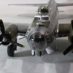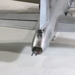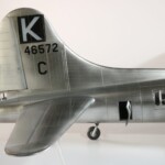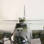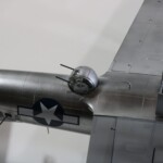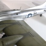 Jak w końcu mi wyschły wszystkie warstwy podkładu to pomalowałem kadłub, ogon i prawe skrzydło Alcladem “Polished Aluminum”. Dwie cienkie warstwy wystarczyły. Postarałem się o delikatnie inny odcień tegoż koloru na górnych panelach skrzydeł ale zrobiłem to tak “delikatnie” że nic z tego nie widać. Jedynie panel po obu stronach nosa bombowca w których było okienko z karabinem maszynowym było wyraźnie innego odcienia. Do tego użyłem koloru “duraluminum” też oczywiście ze stajni Alclada.