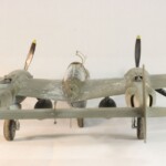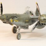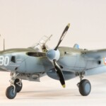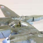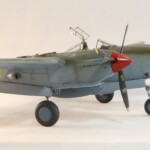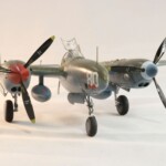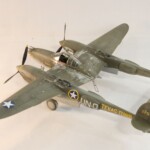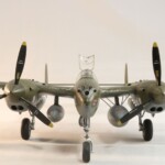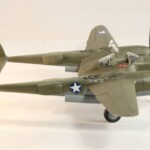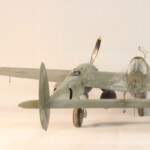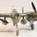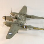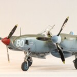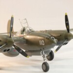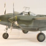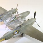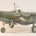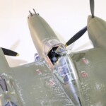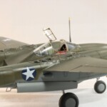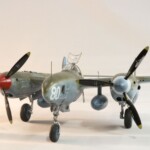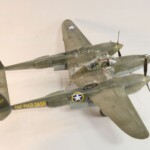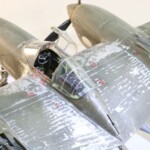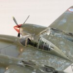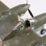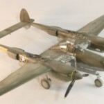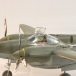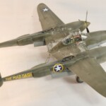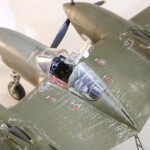 Model starałem się pokazać z okresu pod koniec 1942 roku. Do tej pory miał juz na koncie dwa przeloty międzykontynentalne i długi okres walk w prymitywnych warunkach Afryki. Tak więc nie szczędziłem mu zdrapań a ponieważ była to wersja F gdzie kabina otwierała się na prawą stronę wejść do niego Jack mógł tylko z lewej strony stąd nierównomiernie większe starcia i odpryski po tej stronie niż w wersjach G gdzie można było wsiadać z obu stron. Jedyną modyfikacją modelu Tamiya podobnie jak i w Jeanne #80 było tutaj wymiana radia na Europejski model SCR 522 z tego używanego na Pacyfiku – modelu SCR 274, które także było jedynym w zestawie Tamiya. Tak więc musiałem uciec się do przestępstwa modelarskiego i z dwóch zestawów P38J Hasegawy „wymieniłem radia” na typ Europejski. No cóż łudzę się że do czasu kiedy ogarnie mnie chęć zrobienia „kilku J” Tamiya zrobi już swoją wersję tej maszyny i Hasegawy okażą się niepotrzebne.