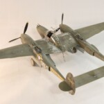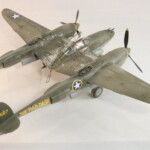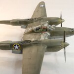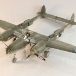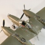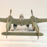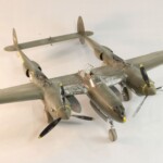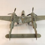 Potem zacząłem drązyć temat dalej, przeczytałem w międzyczasie wszystkie inne jego książki i dalej uważam że najlepsza to jednak „Nocny Lot” z „Lot nad Arras” jako drug.ą najlepszą. Zdecydowałem się zrobić model jego Lightniniga na którym zaginął. Były to lata 90te i wówczas jeszcze się mówiło „zaginął w tajemniczych okolicznościach” sugerując coś pomiędzy sabotażem, zestrzeleniem czy nawet samobójstwem. Ówczesny modelarsko-historyczny konsensus zakładał że była to wersja P 38 F5B czyli krótko mówiąc ten sam foto rozpoznawczy „nos” co w moim Jeanne #80 ale już w wersji J, czyli z lepszymi silnikami i głębokimi wlotami powietrza pod gondolami silników. Wówczas zakładano że była to wersja ze standartowym aluminiowym, nie malowanym wyglądzie jedynie z panelami silników i środkowej gondoli pomalowanymi Olive Drab bądź czarnym. Taką też wersję popełniłem parę lat potem.