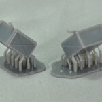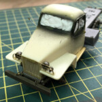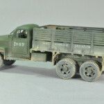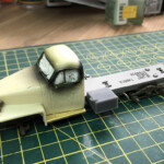 Sam model to Tamiya „2.5 ton truck” (czyli GMC) z płacianą kabiną, pasujący bardziej do Red Ball Express niż do Lend Lease. Na ratunek przyszła konwersja jaką dawno, dawno temu wypuścił Mig. Tam jest żywiczna kabina (z bardzo prostym wnętrzem) i trochę dupereli z blaszki (grill, ramki do okien itp). Składało się to wszystko w miarę bezproblemowo. W paru przypadkach postanowiłem jednak odbiec od instrukcji. Najważniejsza zmiana dotyczyła zbiornika paliwa. Jak popatrzyłem na zdjęcia maszyn Lend Lease, to od razu w oko rzucił się fakt, że w nich ten zbiornik jest po przeciwnej stronie. Do tego doszedł fakt, że w pudełku Tamiya sam zbiornik był raczej nieszczególny – złożył się dobrze, ale mógł by być lepszy. Do pomocy przyszła nowoczesna technologia: zaprojektowałem sobie dwa rodzaje zbiorników w programie Fusion 360 i wydrukowałem na mojej drukarce 3D. Jeden był kopią zbiornika z Tamiya (z odrobinę wydłużonym wpływem), a drugi był zrobiony na podstawie zdjęć. Do zamontowania tego drugiego przekonał mnie fakt, że wpływ paliwa przeniesiony został pomiędzy pakę i kabinę i dla mnie to wyglądało odrobinę fajniej :). Przy okazji dokonałem małej chirurgii żeby przenieść koło zapasowe na drugą stronę.