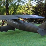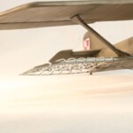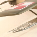 Szkielet obdartego skrzydła przymocowałem przez wywiercenie w krawędzi bocznej prawego skrzydła otworu do którego wsunąłem pół okrągłą krawędź natarcia stelarza skrzydła a z dołu przymocowałem to po prostu „na styk”. Stelarz jest bardzo delikatny i nie jest sztywny z racji swojej delikatnej konstrukcji ale przez naciąganie i klejenie wydaje mi się że osiągnąłem w miarę równie wyglądający płat.