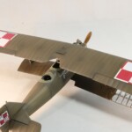 Malowanie to „Polskie Khaki” od góry i dołu, pomimo iz Orliński wpomina coś o jasnoniebieskim spodzie. Żadne zdjęcia ani Kopciuszka ani innych liniowych maszyn tego nie potrwierdzają więc zdecydowałem się na cały khaki. Maszyna po tak długim locie miała parę odprysków farby na pokrywie silnika w tym jedną szczególną w formie „oczka” co starałem się odwzorować na swoim Kopciuszku. W zestwie były dwie opcje kół podwozia, jedne „normalne” okrągłe a drugie, takie jakie używane przez Kopciuszka o przekroju opony kwadratowym. Mam podejrzenie że mogły to być opony z gumy bez powietrza na dużo obciążone maszyny „rekordowe” aby unikać przebitych dętek.