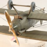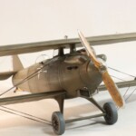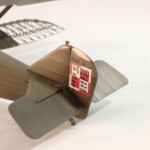 Potem dodałem cieniutką krawędź spływu. Dalej dodałem paski nawierconego plastiku łącząc w środku całą strukturę i parę innych łączeń, które zobaczyłem na zdjęciu. Potem to wszystko pomalowałem na kolor drewna i nawet się postarałem o efekt słojów jak to się robi w przypadku wielu maszyn z I WŚ.