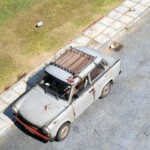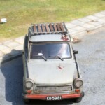 Dorobiłem bagażnik dachowy. W czasach peerelu nie mieć bagażnika na dachu to tak jakby dzisiaj nie mieć w samochodzie radia. Bagażnik wyginany siłą woli z pręcików polistyrenowych uzupełniony deseczkami dociętymi laserem. Typowy handmejd- dokładnie jak w epoce- każdy bagażniki był wypadkową zdobytych materiałów i pomysłowości twórcy.