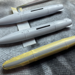 Po malowaniu przyszła pora na „duperele”. AMRAAMy i Sidewindery są z pudełka. Mogły by być lepsze, ale w sumie nie wyglądają aż tak źle i do tego kalki pasują do nich bez większych problemów. Niestety, nie mogę tego powiedzieć o zbiornikach paliwa i zasobniku Sniper XR. Jeżeli chodzi o Snipera to na szczęście miałem w magazynie żywicę z Attack Squadron. Ocena tego jest prosta: polecam. Wygląda świetnie i buduje się absolutnie bezproblemowo. Jeżeli chodzi o te pierwsze to niestety musiałem użyć technologii z XXI wieku :). Zamiast próbować ocalić te z pudełka, zaprojektowałem sobie swoje w Fusion 360 i wydrukowałem na swojej drukarce. Podejrzewam, że zajeło mi to mniej czasu niż bym potrzebował na walkę z tymi z Kinetica. Wydrukowane zbiorniki które widać na tym drugim zdjęciu, to próby drukowania na szybko (pod małym kątem i w rozdzielczości 0.05 mm), żeby ostatecznie sprawdzić rozmiary i dopasować na 100% tą szczelinę do modelu.