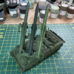 Po budowie przyszedł czas na malowanie. Tutaj największym problemem był wybór kolorów. Nie głównego kamuflarzu, bo tu wiedziałem że po prostu zastosuję kolory Tamiya prosto z buteleczek, tylko z rakietami i drewnianą belką przymocowaną z tyłu kadłuba.