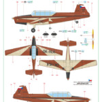 I na tym drugim zdjęciu widać, że okolicznościowy numer „17”, którego przeznaczenia nie znam, a który widnieje na sterze kierunku, jest namalowany również na skrzydle – co najmniej na dolnej powierzchni prawego skrzydła. Eduard nie dołączył tego numeru do kalkomanii prawdopodobnie nie analizując tej drugiej fotografii. Ale to nie jedyny problem z kalkomaniami Eduarda. I nie mówię tu o paskudnym ziarnie z druku cyfrowego. Po przyjrzeniu się zdjęciom doszedłem do wniosku, że i projekt kalkomanii jest do kitu. Elementy oznakowania są a to za duże, a to za małe, a to mają zły kształt. Kalkomania i maski do namalowania beżowej strzały pociągniętej na kadłubie są wykonane jako lita całość, a przy nieco odstającej osłonie silnika nie da się ich tak nałożyć. A już na pewno nie kalkomanii, która w dodatku ma mieć potem możliwość zdjęcia wierzchniej folii. Ale i tak moje dywagacje jak poprawnie porozcinać maski i kalkomanie lamówek strzały okazały się bezprzedmiotowy, bo w zestawie mają zły kształt. Chcąc nie chcąc poczułem się zmuszony do uruchomienia Corela i narysowania własnych wersji całego oznakowania. Wzory oznakowania Zlína OK-HLK, które użyłem do wycięcia masek i wydrukowania kalkomanii wyglądają tak: