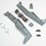 - Sporo detali jest oznaczona w instrukcji jako „lewe” i „prawe”. Dotyczy to głównie detali doklejanych do skrzydła. Warto po odcięciu z wypraski trzymać je w osobnych pojemnikach, bo potem już nie wiadomo który jest który. Zwłaszcza koła, bo prawe koło jest symetrycznym odbiciem lewego w rejonie mechanizmu hamulcowego.