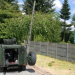 Teraz pozostało zrobić podstawę dioramy. Siałem trawę, lałem asfalt, robiłem odwodnienia, stawiałem mury i słupy. To wszystko na dość dużej powierzchni jak na dioramę. Całość ma wymiary 100/50 cm. Na zdjęciu w trakcie budowy.