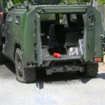 W zestawie nie ma też wyrzutni granatów dymnych, które są widoczne na zdjęciach. Dorobiłem je rysując i drukując wraz z podstawami. Mają zapalniki i kable, czego oczywiście nie widać. Żeby dało się je umieścić na dachu musiałem przerobić relingi i uchwyty nad drzwiami. Na koniec wrzuciłem do wnętrza granat.