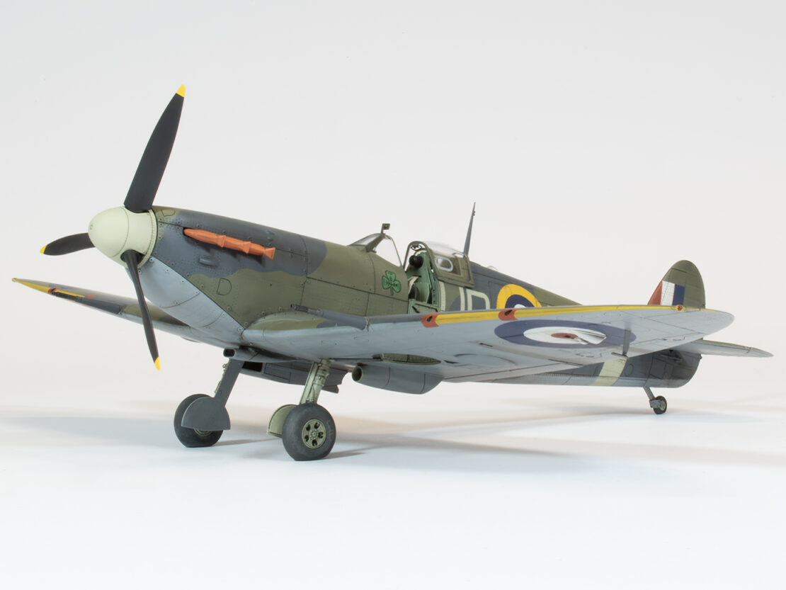 To ostatni z “szczęśliwej siódemki” Spitfirów Mk.V z Eduarda w 1/48, które zacząłem w 2022 roku. Od początku wiedziałem, że serię zwieńczy słynny Spitfire słynnego asa, Irlandczyka “Paddiego” Finucana, czyli Spitfire Mk.Vb AB852 “UD-W” z zieloną koniczynką. Samolot ten wyglądał dziwnie na tle ponad sześciu tysięcy innych Spitfirów Mk.V. Jako jeden z pierwszych Spitfirów Mk.V produkcji Castle Bromwich odziedziczył niektóre elementy jak kołpak śmigła, czy rury wydechowe z wcześniejszych Spitfirów Mk.II produkowanych przez tę fabrykę. Jako samolot, który trafił do służby w dywizjonie 452 zaraz przed rozkazem zmiany kamuflażu z zielono brązowego na zielono szary otrzymał nietypowe malowanie w którym szary był ciemniejszy od zielonego. Wbrew pozorom nie było to w sierpniu 1941 jakimś wyjątkiem. Kilka przesłanek wyjaśniających możliwe powody dlaczego tak się stało jest wymienionych w tym artykule. Wreszcie przy okazji robienia tego Spitfira zaprojektowałem kolejne elementy do druku 3D, które uzupełniają możliwości zrobienia serii Spitfirów Mk.V nie ujętych jak dotąd w wydaniach Eduarda. Mówię głównie o kołpaku Rotol Universal Spinner, przejściowych rurach wydechowych z trójkątnymi wylotami, czy podwoziu stosowanym w Spitfirach Mk.II i Mk.V produkcji Castle Bromwich. Modele STL tych elementów są jak zwykle do ściągnięcia, a link do plików znajdziecie w tym artykule.